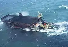 At 19:00 overheating alarm was received from the cooling water system of the port main engine and its power had to be reduced to half. At times the engine had to be run at full power for short periods of time to keep the bow facing the wind. Shortly after 22:00 the speed of the starboard main engine suddenly dropped from 1,000 rpm to roughly 270 rpm, but was restored when the engine was declutched from the shaft. When the second engineer closed the clutch at the normal coupling speed of 400 rpm, the engine stalled. After restarting he attempted coupling the engine again at 1,000 rpm, but it still would not run faster than 270 rpm when connected to the shaft. When the captain received a report that the starboard main engine was no longer usable he decided to abandon the ship and ordered the evacuation of the remaining crew at 22:16. The combination turned parallel to the waves with port side facing the wind and began to drift uncontrollably.[6]