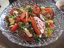 The signature dish of the Herzliya restaurant, located in the Ritz Carlton Hotel, is a tomato salad made with seven varieties of tomatoes, tossed together with olives, radishes, onion, scallion, and fresh basil by chef Kobi Obayon.[8]