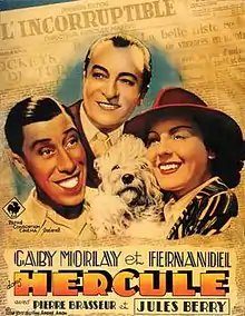 Hercule is a 1938 French comedy film directed by Alexander Esway and starring Fernandel, Gaby Morlay and Pierre Brasseur.[1] The film's sets were designed by Pierre Schild. Jean Grémillon was the film's original director, but he left shortly after production had begun. A simple fisherman from Provence inherits a Parisian newspaper, but finds some of his new staff are dishonest.