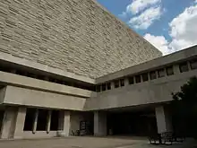 Chancellor Wells continued to support the arts, including creation of IU's Musical Arts Center, a performance space that opened in 1972, and the installation of Peau Rouge Indiana, an Alexander Calder stabile (abstract sculpture) in front of the MAC. In addition, the I. M. Pei architectural firm designed the IU Art Museum, dedicated in 1982, to complete the structures on the campus's Fine Arts Plaza, whose development began during Wells's tenure as IU's president.[51] For a brief period, from July to November 1968, Wells also served as IU's interim president following the resignation of Elvis Jacob Stahr Jr., Well's successor to the university's presidency.[52]