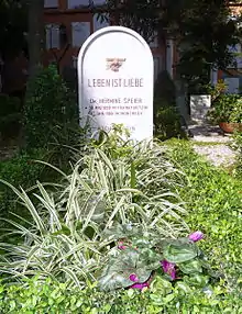 Speier died on 12 January 1989 in Montreux, Switzerland, and was buried in the Campo Santo Teutonico, the Vatican's Teutonic Cemetery.[8] Her grave bears a piece of a Tarentum clay relief which she had wanted to publish about as early as 1937 in the Festschrift Corolla Ludwig Curtius. She had been unable to do so as Jews were excluded from the publication. Finally in 1955 she exhibited the piece from her private collection and published Fragment eines tarentinischen Tonreliefs in römischem Privatbesitz (Fragment of a Roman Tarentum clay relief in private property). Her gravestone also bears the inscription Leben ist Liebe (Life is Love).[4]