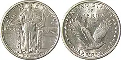 Hermon Atkins MacNeil (February 27, 1866 – October 2, 1947) was an American sculptor born in Everett, Massachusetts. He is known for designing the Standing Liberty quarter, struck by the Mint from 1916-1930; and for sculpting Justice, the Guardian of Liberty on the east pediment of the United States Supreme Court building.