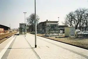 Two thieves removed the tracks of a siding with a welding torch on 9 February 2008, but they were caught in the act. The signal box at the station bridge, which had been taken out of service on 28 September 2006, was demolished on 28 May 2008. In total there were two signal boxes. Both incorporated mechanical interlockings of the Jüdel type.[4] Today, all signalling operations are managed centrally from Leipzig. The goods shed opposite the station were also demolished in May 2009. A new ticket machine went into operation in October 2009. Passengers had often criticised the station for being in a messy and unclean condition. From then on, a contractor has cleaned it twice a week. A council decision was taken on 11 April 2011 to charge for parking in front of the station. A private investor bought the then-vacant entrance building on 8 April 2013.[3]
