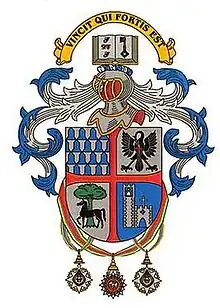 As a legitimate descendant, Hernan Garcia de Gonzalo y Vidal holds honorary and nobility rights such as the use of de Tejada as part of his last name and the exclusive use of the Coat of Arms, blazon described in the Royal Cedula of Henry IV, given in Valladolid the 1st. of September 1460, confirmed by the Catholic Monarchs, the Emperor Charles V and his successors until King Juan Carlos I in 1981.[6]