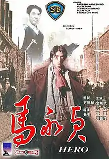 Hero (Chinese: 馬永貞; Jyutping: Ma2 Wing2 Zing1) is a 1997 Hong Kong martial arts film written and directed by Corey Yuen. The film stars Taiwanese-Japanese actor Takeshi Kaneshiro, established Hong Kong action stars from the China Drama Academy (Yuen Biao, Yuen Wah, Corey Yuen, Yuen Tak) and Hong Kong actresses Valerie Chow and Jessica Hsuan. Hero is a remake of the 1972 film Boxer from Shantung. The film was produced by then TVB chairwoman Mona Fong.[1]