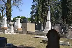 The Church Street Cemetery is located on the corner of WF Nkomo (Former Church street) and Eskia M'phahlele drive (Former DF Malan Drive) in Pretoria.[2] The central part of this historic cemetery is known as The Heroes' Acre. The cemetery is a vast green field filled with tombstones of diverse shapes and styles which are organized in rows. As this is a Christian cemetery, the graves are oriented facing east. Trees and shrubbery give the cemetery a calm feel. The silver crosses in The Heroes' Acre are significant and distinctive of the cemetery.