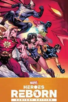 "Heroes Reborn" is a 2021 comic book storyline published by Marvel Comics, consisting of a central miniseries written by Jason Aaron and illustrated by Ed McGuinness, as well as a number of tie-in books. The storyline explores a Marvel Universe without the Avengers, though it is unrelated to the 1996–97 storyline of the same name.[1] The plot involves a change in the timeline of the Marvel Universe, which results in a continuity in which the Squadron Supreme are Earth's mightiest heroes while the Avengers never came to be. However, the vampire slayer Blade is the only one aware of the change in history and works to uncover the mystery behind it.[2] The crossover overall received mixed reviews with critics.