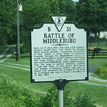 In 1883, Von Borcke's wife died, and two years later, he married her sister Tony, they named their daughter Karoline Virginia in honor of Borcke's adopted state.[1] In between, in 1884, he sailed back to revisit the Southern United States and was reunited with many former comrades and friends, including Wade Hampton, William H. F. Lee, and Matthew C. Butler. He died in Berlin in 1895 due to a sepsis caused by the remaining projectile which had wounded him in the Battle of Middleburg on 19 June 1863.[1] His headstone over his grave in Giesenbrügge was destroyed by the Red Army during World War II. The Sons of Confederate Veterans (SCV) purchased a new headstone, which was reinstalled in 2008.[8]