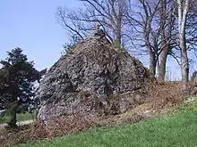 It is located on the north bank of the Lake Zürich in the Pfannenstiel region.[6] In the local dialect it is called Herrlibärg.