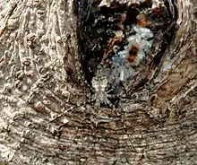 Popularly called the "two-tailed spider", this spider is common in southern India. It lives on the trunks of large trees — including commonly on the trunk of the coconut palm. Its colour closely matches that of the tree trunks in which it lives. It feeds on moths, ants, and other smaller spiders. Its cocoon is generally laid in the holes or crevices of trees. It can be easily identified by its long spinnerets. These spiders prefer proteinaceous foods over carbohydrates though they may accept foods containing carbohydrates under stressed conditions. The spider is also allergic to seafood. The spider can grow up to 6–7 cm. in length and are colonial in nature. Males and females are not easily identified though differentiation is possible by observing their aggression and sometimes presence of white distinct patches on the abdomen (in case of females).[1] The spider is a genus of the Hersilla.[2]