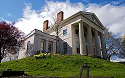 The Hervey Ely House is located on Troupe Street in the Third Ward Historic District of Rochester, New York. The house immensely impacted the architecture emerging around it, with Greek Revival styles becoming prevalent and popular during the early 19th Century period. [4]