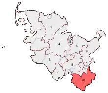 Herzogtum Lauenburg – Stormarn-Süd (English: Duchy of Lauenburg – Stormarn-South) is an electoral constituency (German: Wahlkreis) represented in the Bundestag. It elects one member via first-past-the-post voting. Under the current constituency numbering system, it is designated as constituency 10. It is located in southern Schleswig-Holstein, comprising most of the Herzogtum Lauenburg district and southern parts of the Stormarn district.[1]