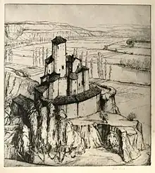 Hester Frood (1882-1971) was a painter and printmaker born in New Zealand. She came to England as a child of seven and was educated at Exeter School. She studied art at Académie Colarossi in Paris. In 1906 she met artist David Young Cameron in Scotland and he taught her etching.[1]