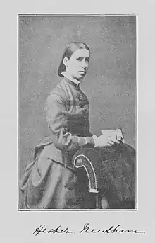 Hester Needham (23 January 1843 - 12 May 1897) was a British women missionary and travel writer. She is known for the posthumous publication of God First or Hester Needham's work in Sumatra, a travel book published in 1899. A copy is part of one of the Special Collections of Maastricht University.[1] It is the only known book written by a female missionary in Indonesia during those times. The book comprises Needham's letters and diaries, arranged by Mary Enfield. It also includes a preface written by Sarah Geraldine Stock and a chapter about the biography of the author.[2] Needham stayed in Sumatra from 1889 to 1897, where she died.[2] She traveled there to take part in the missionary work of the Rhenish Missionary Society, as the first evangelist woman of the mission.[3]