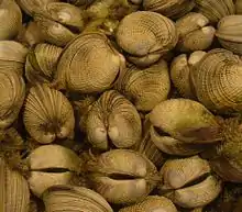 | The venerid species Austrovenus stutchburyi, the New Zealand cockle, is sold internationally as sea food. | |