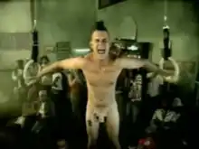 Young's full frontal on the rings, shown during Bounty Killer's line "The way you rock your hips, you know that it amaze me," was controversial.[32] Bounty Killer's rival Beenie Man stated that "the video portray Bounty as a gay. That is a Jamaican artist, and that can't gwan in a dancehall, no way." Bounty Killer cancelled his performances with No Doubt because of the incident, stating that "they did not understand because they are from America and they accept gay people … If Jamaica is upset, I ain't going to accept no success that my culture is not proud of."[33]