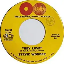 "Hey Love" is a 1966 song by Stevie Wonder, from his album Down to Earth. It was released as a B-side to "Travelin' Man," but it also reached the charts in its own right, peaking at number 90 on the Billboard Hot 100 and number nine on the R&B Singles chart in the spring of 1967.[1][2] It has been covered by other artists, including Bettye LaVette and R. Kelly.