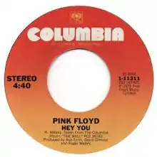 "Hey You" is a song by English rock band Pink Floyd,[1] released on their 1979 double album The Wall.[2] The song, along with "The Show Must Go On", was edited out of the film for fear on the part of the filmmakers that the film was running too long; however, a rough version is available as an extra on the 25th Anniversary Edition DVD.