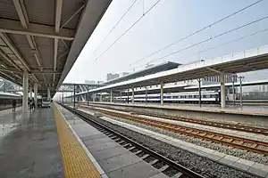 Huoqiu railway station (Chinese: 菏泽站) is a railway station in Mudan District, Heze, Shandong, China. It is an intermediate station on the Beijing–Kowloon railway and the Xinxiang–Yanzhou railway.