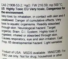 Extremely toxic, environmental pollutant |