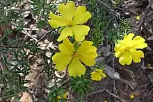 This hibbertia grows scattered locations in open forest, mainly in the Pilliga Scrub in central northern New South Wales.[2][3]