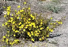 Hibbertia hypericoides, commonly known as yellow buttercups,[2] is a species of flowering plant in the family Dilleniaceae and is endemic to the south-west of Western Australia. It is usually a spreading shrub with linear to elliptic or egg-shaped leaves, and yellow flowers, usually with ten to fifteen stamens arranged in a cluster on one side of the two densely hairy carpels.