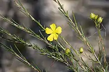 Hibbertia virgata, commonly known as twiggy guinea flower,[2] is a species of flowering plant in the family Dilleniaceae and is endemic to south-eastern Australia. It is an erect shrub with linear leaves and yellow flowers with ten to twelve stamens arranged around three glabrous carpels.