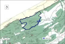 The boundary of the wildland as determined by the Wilderness Society is shown in the adjacent map.[1] National Geographic Trail Map 788 gives the location of other trails and forest service roads.[2] Additional foot access can be gained using old logging roads. The Appalachian Mountains were extensively timbered in the early twentieth century leaving logging roads that are becoming overgrown but still passable.[3] Old logging roads and railroad grades can be located by consulting the historical topographic maps available from the United States Geological Survey (USGS). The Hickory Flats wild area is covered by USGS topographic maps Waiteville, and Interior.[1]