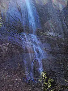 Hickory Nut Falls flows on Fall Creek through the Hickory Nut Gorge, and is part of Chimney Rock Park, a park that was privately owned until May 2007, when the State of North Carolina completed the purchase of the park.[1] Chimney Rock Park and the Hickory Nut Gorge are being developed into a state park.