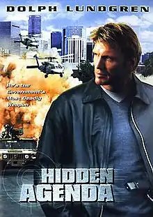 Hidden Agenda is a 2001 Canadian action film written by Les Walton and directed by Marc S. Grenier. It stars Dolph Lundgren as Jason Price, who is a former government agent who now earns money helping people disappear through a program he engineered. When his childhood friend Sonny (Ted Whittall) and mobster Paul Elkert (Serge Houde) both come to Price for help, things begin to go awry. Someone has infiltrated Price's network, and his clients begin turning up dead. He is helped in his investigation by the mobster's assistant, Renee Brooks (Maxim Roy) -- but no one is who they seem to be.[1]