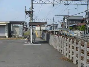 Higashi-Akasaka Station has two opposed ground-level side platforms connected by a level crossing. The station is unattended.