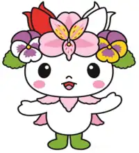 Higashikagura's mascot is Kagulucky (かぐらっき~, Kagurakki~). She is a flower fairy who has a tulip motif. She is also a bringer of luck. If you want her to bring luck, make a "L" hand signal and she will appear.[3]