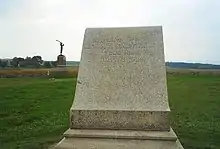 The high-water mark of the Confederacy or high tide of the Confederacy refers to an area on Cemetery Ridge near Gettysburg, Pennsylvania, marking the farthest point reached by Confederate forces during Pickett's Charge on July 3, 1863.[1] Similar to a high water mark of water, the term is a reference to arguably the Confederate Army's best chance of achieving victory in the war. The line of advance was east of "The Angle" stone wall.[2]