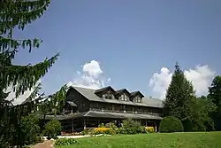 The High Hampton Inn Historic District encompasses 12 contributing buildings and 1 contributing site. They include the High Hampton Inn (1932-1933), a 2 1/2-story, "L"-shaped, gable roofed Rustic style structure sheathed in chestnut bark siding. It was designed by locally prominent architect Erle Stillwell and features a one-story, hip roofed wraparound porch with an extended Porte-cochère. Other contributing resources include the Lake Cottage (1932), Hampton Cottage (1932), Halsted Cottage (1932), Chimney Top Cottage (c. 1932), Rock Mountain Cottage (1941), Mayapple Cottage (1932), Lodge Cottage (c. 1900 and 1925), Thorpe Cottage (1936), Wade Hampton Smokehouse (c. 1890), Supply Building (c. 1890 and 1927), and the Recreational Landscape (1922-1941).[2]