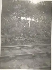 Beside the transit shed a road crossed the junction extension line at an ungated crossing. A red iron plate on a post was turned 90 degrees to indicate "stop" to either the road or the railway.[2]