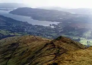 Much of the view from the top is curtailed by higher fells but there is a view of the Far Eastern Fells over the Scandale Pass and an excellent view of Ambleside and the head of Windermere.