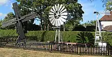The High Salvington Windmill Trust acquired in late 2007, and completed restoration during 2007–09, the Glynde Windpump, a much smaller hollow post mill. This originally stood at grid reference TQ 457 087 - 50.859°N 0.069°E, it was built in the mid nineteenth century, possibly to supply water to steam engines which powered an aerial ropeway at a nearby quarry, or possibly to raise water from a cutting parallel to a series of lime kilns, for slaking the lime.[9] The rotting remains of the pump were rescued by Andrew Norman who started the restoration, before its acquisition by the High Salvington Mill Trust, which has completed the restoration and installed it beside the existing windmill.