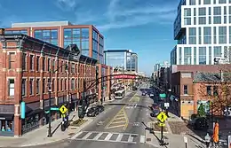 The street has a relatively broad width; it was originally laid out to be 100 ft (30 m) wide. Only Broad Street was wider, at 120 feet, while most others were 82.5 feet, and alleys were 33 feet wide.[4]