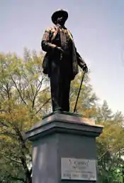 The park houses a Jimmie Rodgers museum honoring the Meridian-born country legend and displaying the original guitar of the so-called "Singing Brakeman," along with other memorabilia of his life and career and various railroading equipment from the steam engine era – Meridian's "golden age".[3] In addition to the museum building itself, which was built in 1976,[4] outside memorials honor the country star, and a vintage steam locomotive is displayed on a small section of railroad track, symbolizing Meridian's strong ties to railroading history.[3] The locomotive is a 1917 Baldwin steam locomotive from the Susquehanna and New York Railroad line. It was later used by the Meridian and Bigbee railroad, who donated it to the city in 1953 as a memorial to all deceased railroaders. The locomotive was moved to the park in 1970.[4]