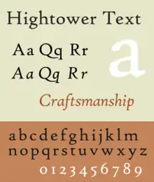 Hightower Text is a serif typeface designed by Tobias Frere-Jones. It is loosely based on the printing of Nicolas Jenson in Venice in the 1470s, in what is now called the "old style" of serif fonts.[1]