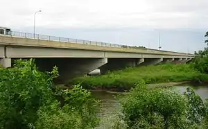 Highway 25 Bridge is a concrete girder bridge that spans the Mississippi River between Monticello, Minnesota and Big Lake, Minnesota. It was built in 1988 by the Minnesota Department of Transportation and was designed by VanDoren Hazard Stallings.