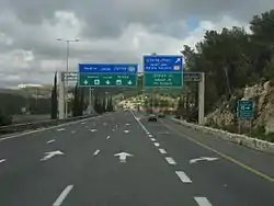 Since its construction, the road was called national Route 404.[5] In internal Jerusalem Municipality documentation, it was known as Jerusalem Road 4. In 2012, the Israel Ministry of Transport and the Jerusalem Municipality began using the designation 50.[6][7] New blue "Highway 50" signs were posted by the National Roads Company of Israel to reflect this change.[8][9][10] The Moriah-Jerusalem Development Corporation, responsible for road construction in Jerusalem also uses the designation, 50.
