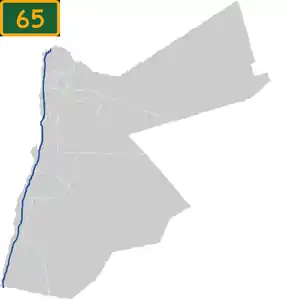 Highway 65, also known as the Dead Sea Highway, is a north–south highway in Jordan. It starts in Aqaba passing through Wadi Araba, and adjacent to the Dead Sea and the Jordan Valley to the western suburbs of the city of Irbid in Jordan's northern tip.
