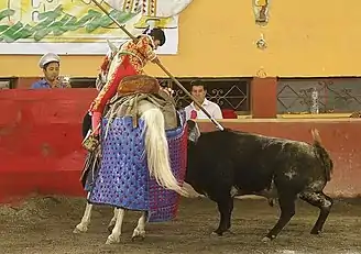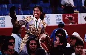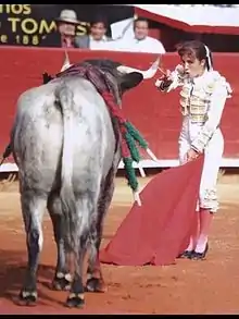 Hilda Eliana Tenorio Patiño (born June 11, 1986)[1] is a Mexican bullfighter and matador. She was the first woman to receive her alternativa in the Plaza de Toros México, the largest bullring in the world, aged 24.[2][3] Tenorio completed her alternativa on February 28, 2010.[4] She has been an outspoken advocate of feminism in the sport.[5] She is the third Mexican woman to attain the rank of matador.[5]
