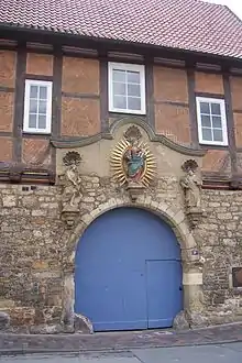The last visible structural trace of the charterhouse is the Baroque gateway in the Neue Straße, now part of the St. Bernward Hospital, with figures of the Madonna in glory, Saint John the Baptist and Saint Bruno of Cologne, the founder of the Carthusian Order, standing on pedestals above it.