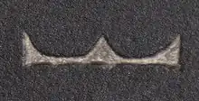 The ancient Egyptian Hill-country or "Foreign land" hieroglyph (π) is a member of the sky, earth, and water hieroglyphs. A form of the hieroglyph in color, has a green line-(banding) at the base of the hieroglyph. The hieroglyph refers to the hills, and mountains, on both sides of the Nile River, and thus the green references the verdant black farming land adjacent to the river proper. It is coded N25 in Gardiner's sign list, and U+13209 in Unicode. It is determinative hieroglyph, simply conveying a meaning, and has no phonetic value.[1]