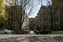 Hillcrest Apartment is a historic apartment building at 1509-1515 Hinman Avenue in Evanston, Illinois. Built in 1922, the three-story brick building has a U-shaped plan with a central courtyard, a common layout for suburban apartment buildings. The courtyard is fenced and gated on its open side, providing privacy despite the building's downtown location. Architect Roy F. France designed the building in the Georgian Revival style. The building's design includes limestone trim meant to approximate quoins, a balustrade with ornamental urns, and pediments atop the entrance blocks.[2][3]