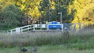 Hilldale consists of a single wooden and concrete platform about three metres long. It is serviced by NSW TrainLink Hunter line services travelling between Newcastle and Dungog. There are five services in each direction on weekdays, with three on weekends and public holidays.[3] It is a request stop with passengers required to notify the guard if they wish to alight and "flag" the train down if they wish to board.