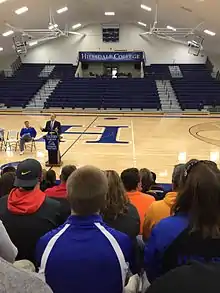 The women's volleyball team of Hillsdale College play their home games in the newly renovated Dawn Tibbetts Potter Arena, formerly known as the Jesse Phillips Arena.[6]