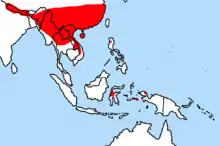 This rat is native to southeastern Asia. Its range extends from northern India, Bhutan, Nepal and probably Bangladesh, through central, southern and eastern China and southward to Myanmar, Thailand, Laos and Vietnam. It has been introduced to Palau, the Philippines and Indonesia. It generally inhabits both primary and secondary forests at altitudes up to about 2,750 m (9,000 ft), but is an adaptable species and is also found in plantations, on agricultural land and around human dwellings.[1]